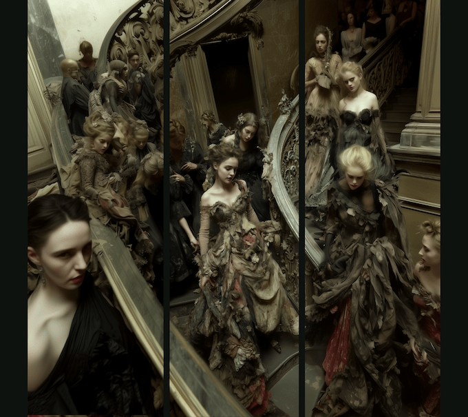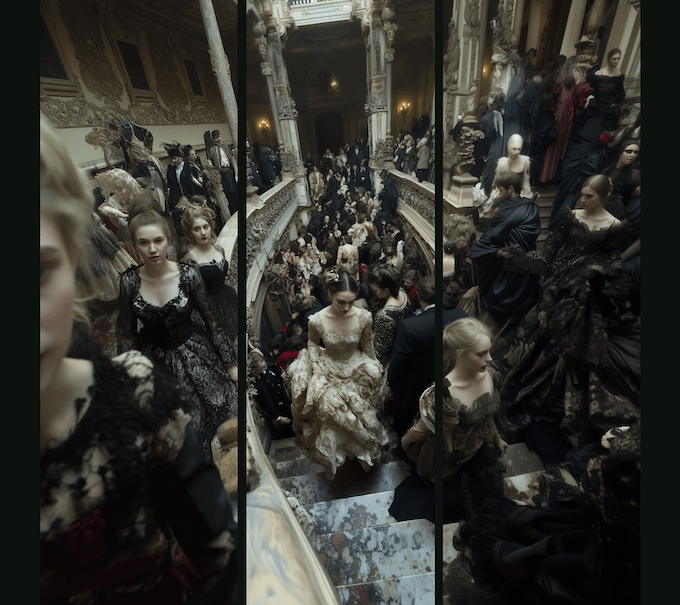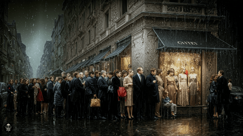 La colección propone una lectura melancólica sobre el fin del esplendor: el momento en que el arte, la moda, el deseo y la multitud confluyen en una coreografía deslumbrante, pero sin alma.