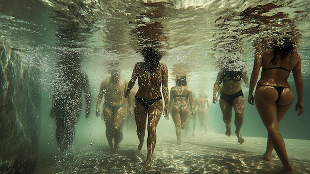 Somos agua y, a la vez, no podemos sobrevivir en ella. Esta colección explora la sensación de estar inmerso en algo más grande que uno mismo, algo que a la vez te protege y te asfixia. De un juego entre la atracción y el temor, la serenidad y la amenaza. Prepárate para sumergirte en un mundo de texturas, de emociones a flor de piel, de miradas sin palabras. Aquí, el agua no solo es agua, es un espejo, una prisión, una liberación. Déjate llevar por la corriente, y descubre lo que se esconde tras la superficie.
