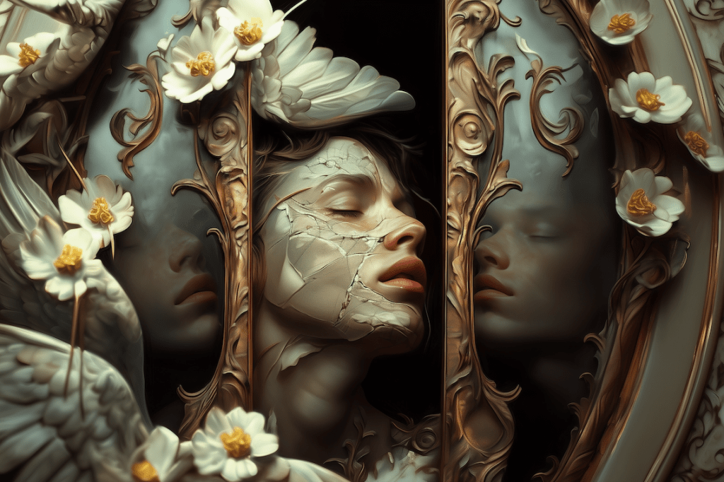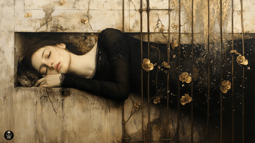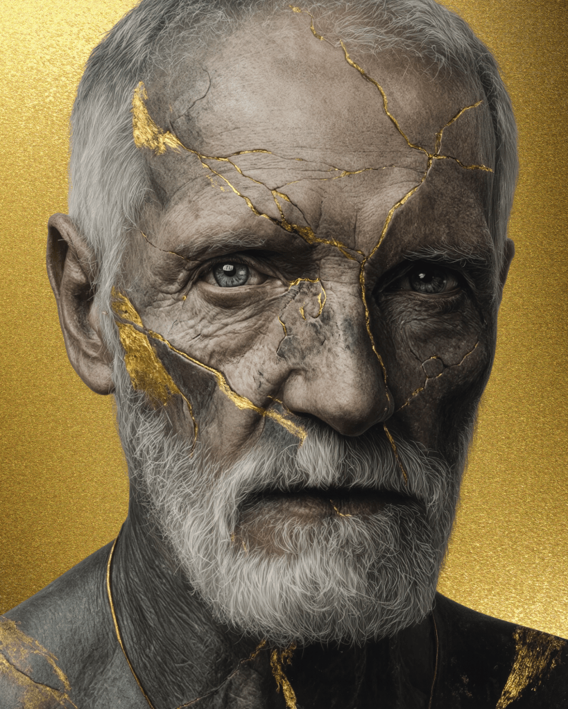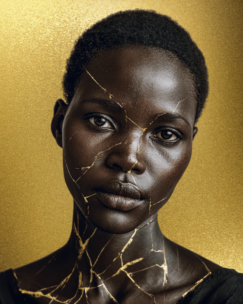 Las grietas doradas, inspiradas en la técnica japonesa del Kintsugi, no disimulan la fractura: la celebran. Son la metáfora de un alma que no se niega a sí misma, que asume su historia y la convierte en símbolo. Allí donde otros verían quebranto, esta obra busca la luz que se filtra entre las fisuras, esa belleza que sólo existe porque hubo herida.