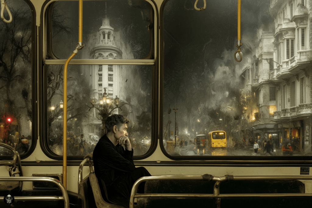 El colectivo (omnibus urbano) en Buenos Aires, no solo es un medio de transporte ubicuo y eficaz: es una galería de personajes y, eventualmente, un portal a diferentes estados de conciencia. Especialmente de noche se convierte en un ámbito de claroscuros y misterios. Tal vez no todos los pasajeros nocturnos que nos rodean entonces existan en nuestra dimensión. Podrían ser personajes de nuestros sueños o, nosotros mismos, ser un sueño de los otros.