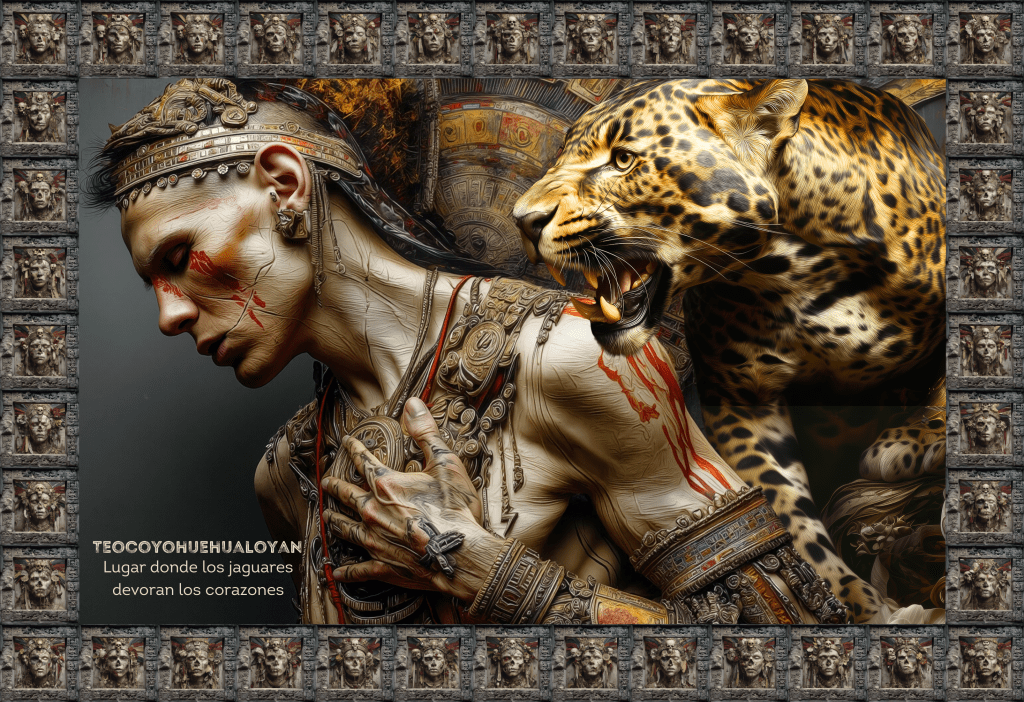 Esta serie recorre los nueve niveles del Mictlán, el inframundo de la tradición nahua, y también los otros destinos posibles de las almas: Tlalocan, Chichihualcuauhco y Omeyocan. En el mundo náhuatl, el camino al Mictlán dura años y exige atravesar regiones que despojan—del cuerpo, del calor, del nombre—hasta dejar al viajero en puro tránsito. Ese mismo proceso lo encarnas en el gesto visual: los marcos-tótem operan como dinteles, las texturas metálicas y líticas como señales de umbral, y la dirección del movimiento (correr, remar, escalar, volar, caer) compone una coreografía de vaciamiento. Aquí no hay morbo ni folklore; hay liturgia de la mirada.
