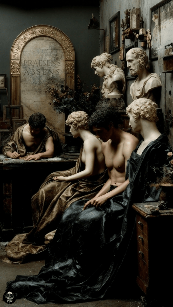 En la penumbra del taller renacentista, entre mármoles, yesos y telas, el arte se piensa a sí mismo. Las escenas de ‘Bottega – Ars et Memoria’ no son simples reconstrucciones históricas, sino meditaciones visuales sobre la transmisión del saber y la fragilidad de la identidad artística. En ellas, maestro y discípulo, artista y modelo, obra y observador, intercambian silenciosamente sus roles. Nadie pertenece del todo a su papel: el escultor parece ser modelado por su propia estatua, el aprendiz observa y enseña a la vez, y la mirada del espectador completa el círculo invisible de la creación.