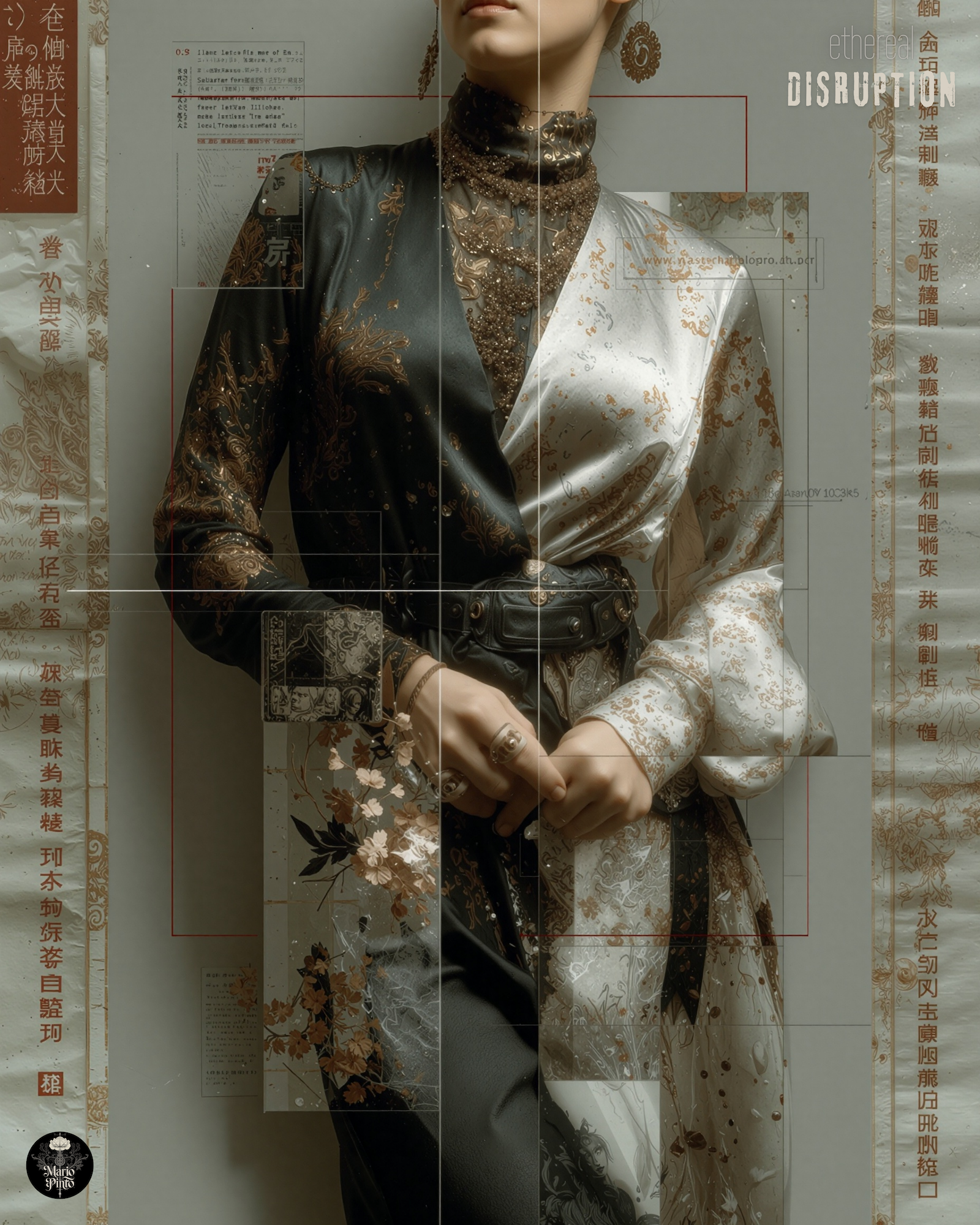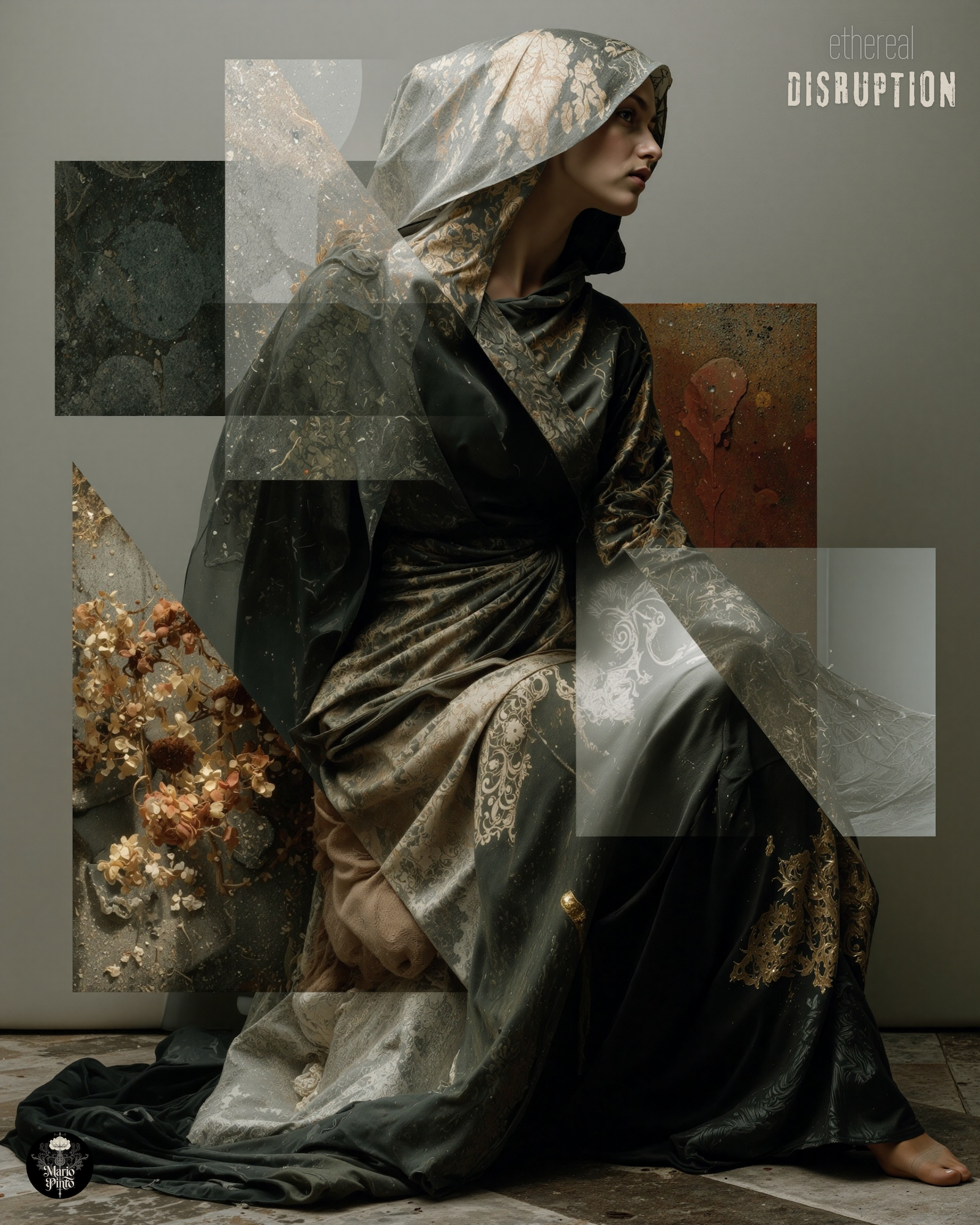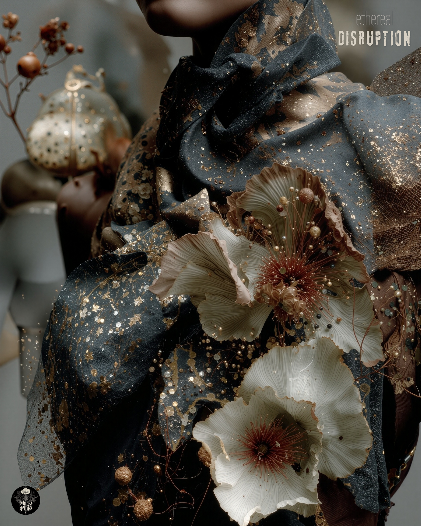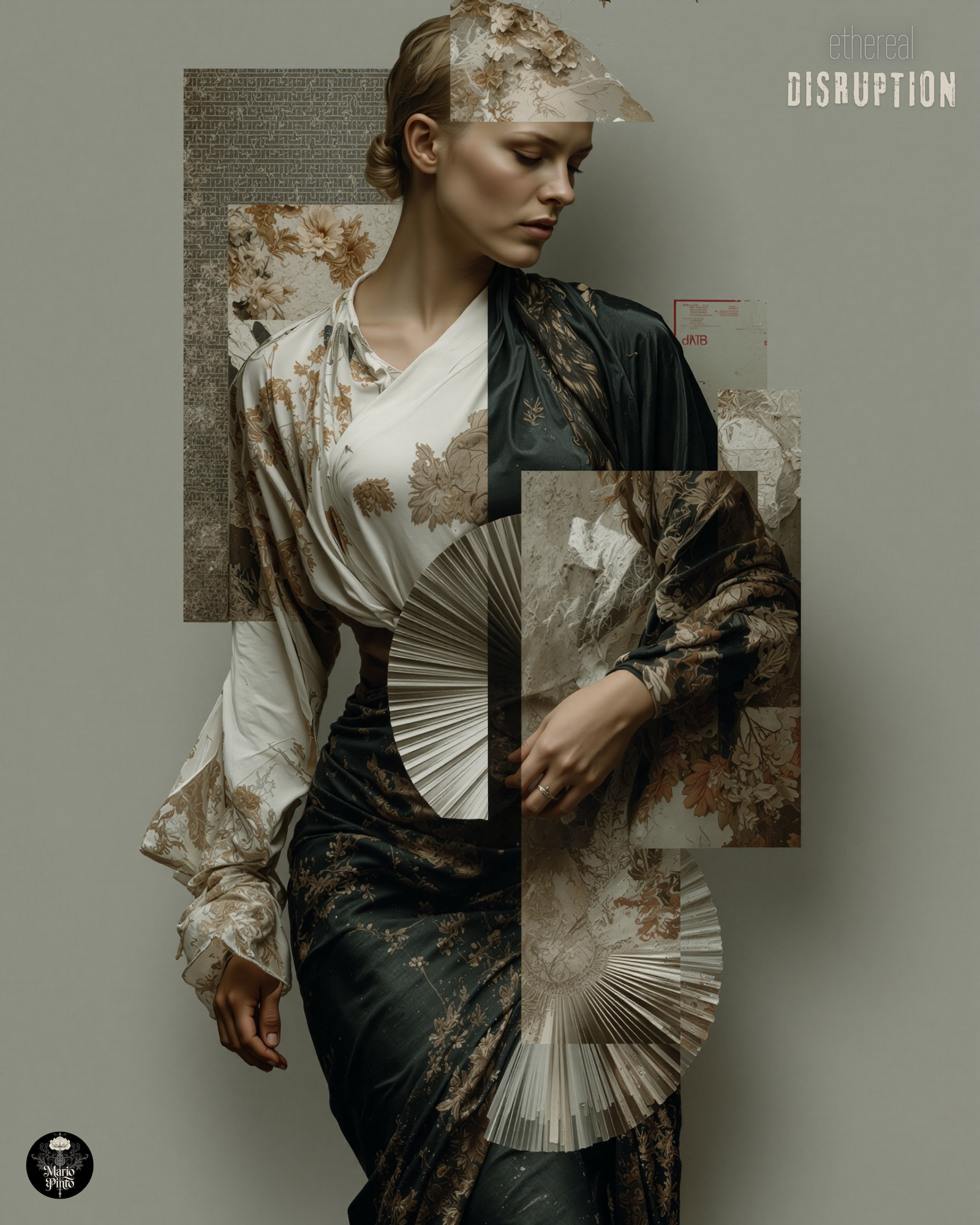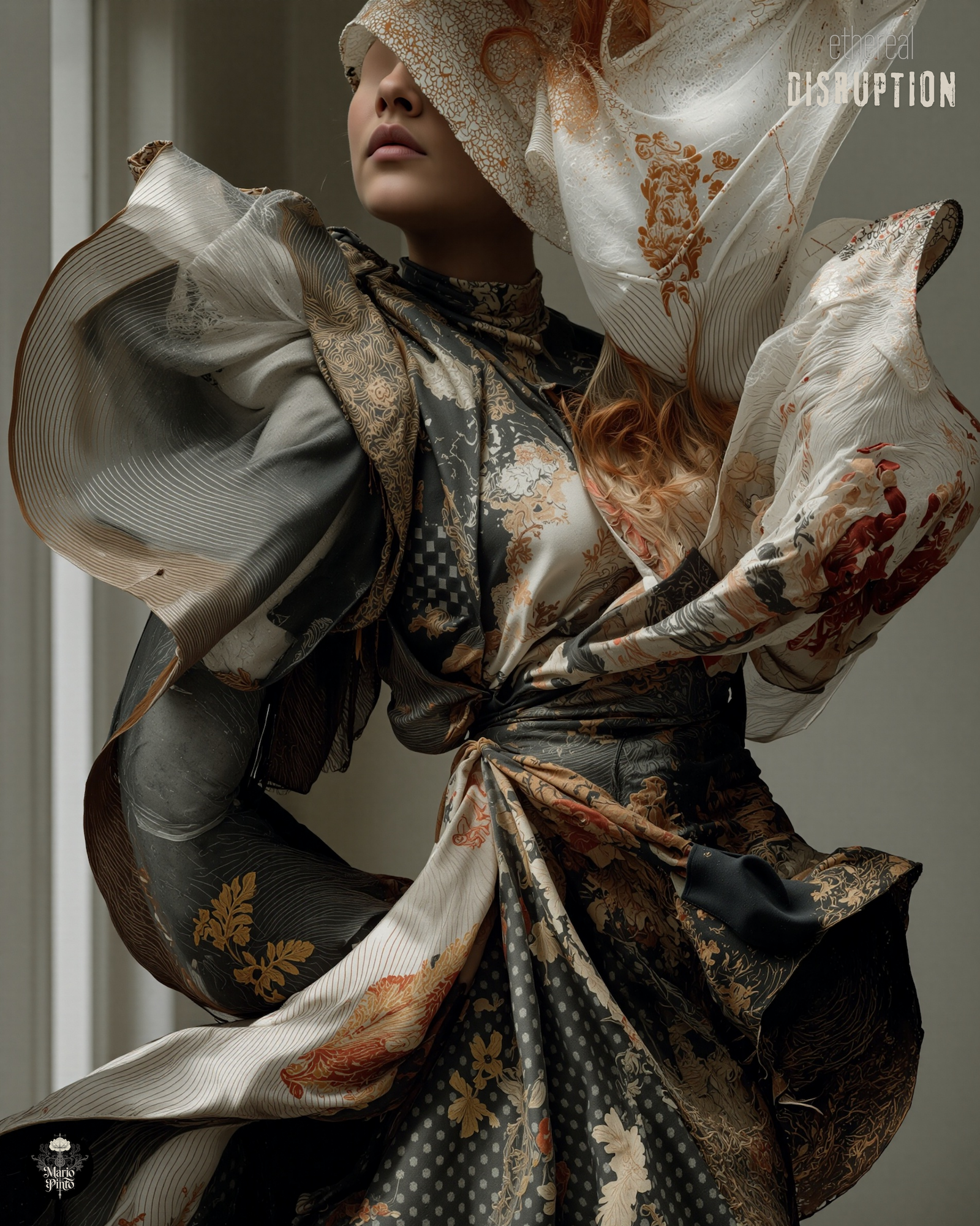 Ethereal Disruption es una colección que juega en el límite entre el diseño de moda y la abstracción artística. Sus siluetas y texturas, al mismo tiempo etéreas y contundentes, desarticulan la idea de prenda funcional para transformarla en un gesto visual. Aquí la innovación convive con lo poético: un territorio lúdico donde la moda se convierte en lenguaje plástico y la abstracción adquiere cuerpo y movimiento